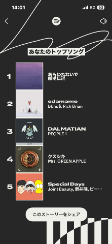 Spotify使ってるお兄さん達はなの曲がランクインしてたかな??